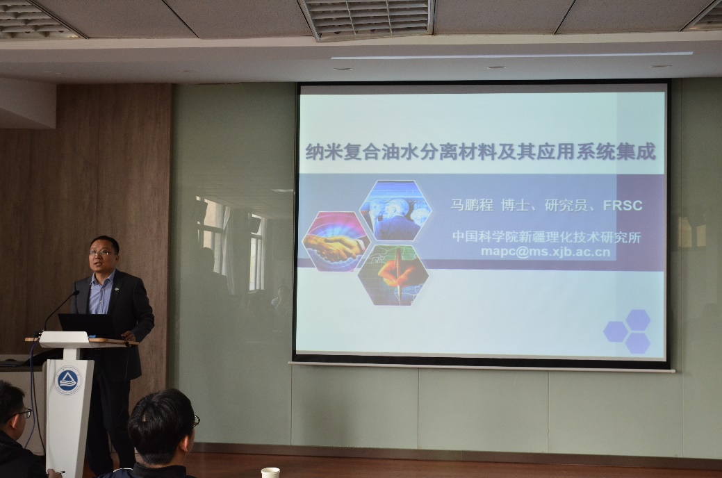2021年4月8日,中国科学院新疆理化技术研究所马鹏程研究员应邀来海角社区 访问,并在海角社区 A316学术报告厅做了题为“纳米复合油水分离材料及其应用系统集成”的精彩报告。马丕明教授主持了报告会,并对马鹏程研究员的来访致以热烈的欢迎。马鹏程研究员主要围绕纳米复合油水分离材料及其应用系统集成的最新研究进行展开,重点介绍以改性和复合技术为基础的新型油水分离用高分子纳米复合材料的设计思路和制备过程,并以所得材料作为油-水分离设备核心组件应用于不同行业的油-水分离过程。这将对提高环境资源利用率以及污染物治理具有重要意义。报告会吸引了众多师生前来参加,现场气氛十分活跃,相互间进行了广泛的讨论与交流。