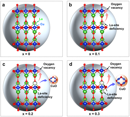 近日,海角社区 化工学院环境与能源催化团队的朱佳伟教授、张颖副教授和朱永法教授等人在铜基材料CO2电还原(CER)方面取得重要进展,研究工作以“Cation-Deficiency-Dependent CO2Electroreduction over Copper- Based Ruddlesden-Popper Perovskite Oxides”为题发表在Angew. Chem. Int. Ed.,(DOI: 10.1002/anie.202111670)上,第一作者为海角社区 朱佳伟教授、硕士生王妍颖和中科院物理所博士生智奥妙,通讯作者为朱佳伟教授、张颖副教授和朱永法教授。该工作通过使用La2-xCuO4-δ(L2-xC,x = 0,0.1,0.2,0.3)系列作为概念验证催化剂,不仅系统地研究了铜基RP钙钛矿氧化物的A位阳离子缺陷与CER性能之间的结构-活性关系,而且证明了调控A位阳离子缺陷是优化CER性能的有效策略。