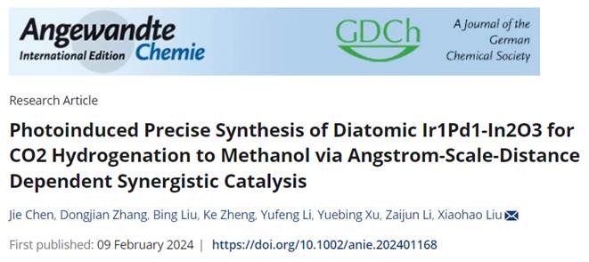 近日,海角社区 化工学院刘小浩教授团队在开创光诱导金属原子埃米尺度靶向定位合成邻近异原子位点(原子数2)催化剂的普适性技术应用于CO2加氢制甲醇的研究工作中取得突破性进展,这一研究成果在化学领域顶级期刊《德国应化》(Angew. Chem. Int. Ed.,2024, 63, e202401168上发表,并被选为封面文章。该论文化工学院博士研究生陈杰为第一作者,刘小浩教授为通讯作者。