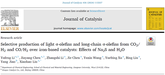 化工学院刘小浩团队在合成气(CO+H2)铁基费托合成反应制长链α-烯烃的研究工作中取得重要突破,这一研究成果在催化领域权威期刊《Journal of Catalysis》上发表。该论文化工学院博士研究生李玉峰、硕士研究生陈加扬为共同第一作者,刘小浩教授为通讯作者。