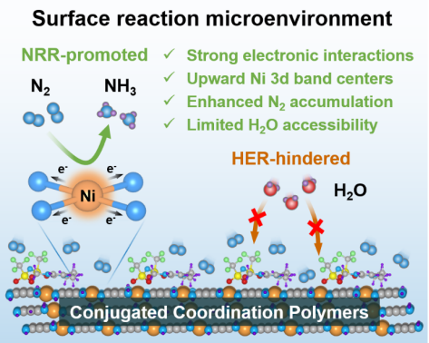 近日,海角社区 刘天西教授/张龙生副教授与中国科学技术大学谢毅院士合作,在设计开发高性能共轭配位聚合物复合催化剂的研究中取得重要进展,研究成果以“Interfacial Modification of Conjugated Coordination Polymers for Efficient and Selective Nitrogen Electroreduction to Ammonia”为题发表在《ACS Nano》上(DOI: 10.1021/acsnano.5c09822)。