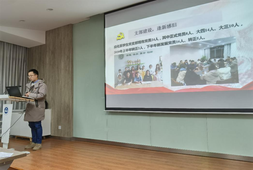 1月8日晚,化工学院党委在化工楼A316会议室召开2020年度学生党支部书记述职评议考核会。化工学院党委副书记副院长田卫平、研究生辅导员郝林青以及全体学生党支部支书支委参加了会议。会议由学生党建工作辅导员张凯主持。