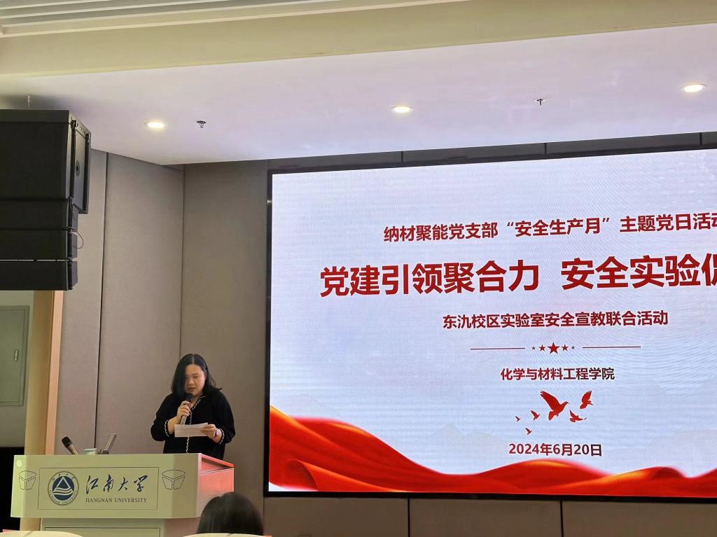 为深入学习贯彻习近平总书记关于安全生产的重要论述和指示精神,落实教育部关于校园安全稳定工作的部署要求,值此全国第23个“安全生产月”之际, 为增强师生实验室安全意识和应对突发事件的能力,营造浓厚的实验室安全氛围,6月20日,纳材聚能党支部开展“党建引领聚合力,安全实验促科研”实验室安全专题活动。本次活动特别邀请了上海飞域实验室设备有限公司总经理杨安兴、经理何鑫和无锡粒子云信息科技有限公司工程师庞丽丽进行专题讲解。海角社区 宜兴研究生院办公室副主任倪寒冰、化工学院党委副书记兼副院长董霞、宜兴研究生院办公室科长徐怡学以及化工学院实验室安全管理教师张一波出席活动,化工学院辅导员李晓洁主持本次活动。