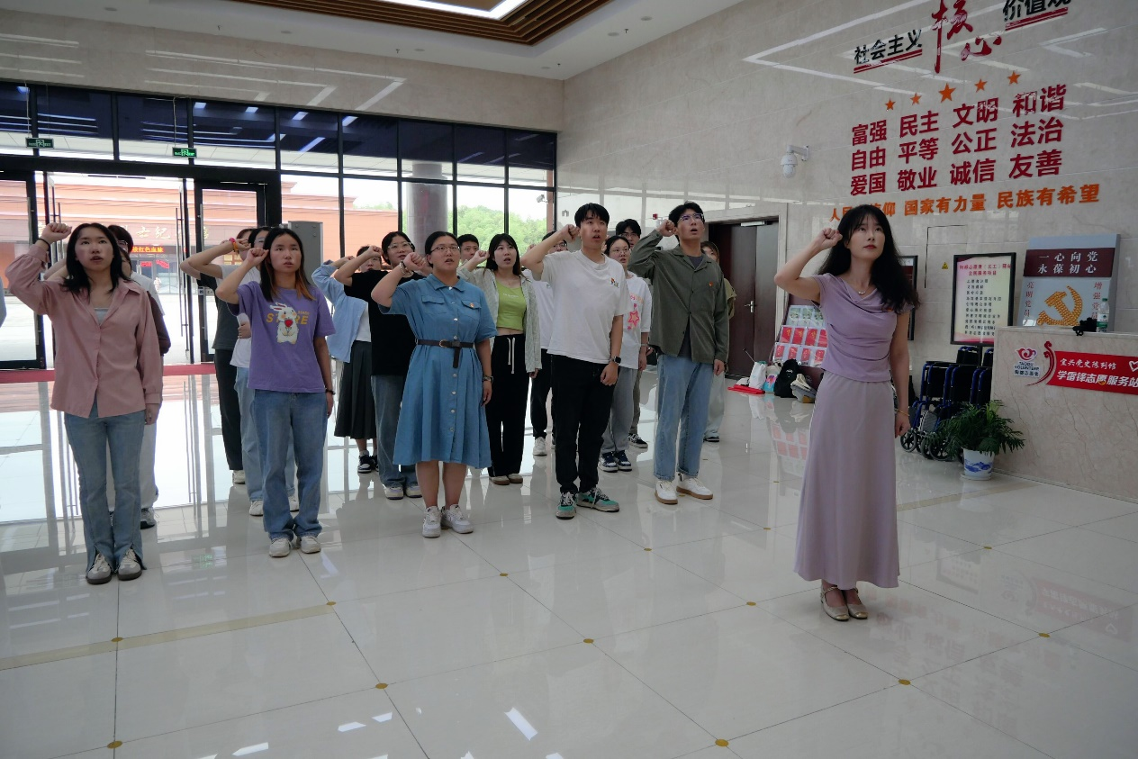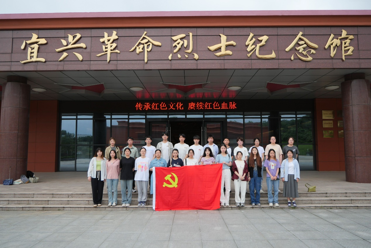 活动当天,党支部成员参观了宜兴党史陈列馆、革命烈士纪念馆。在讲解员的带领下,党员们沿着中共宜兴地方组织90 多年的奋斗历程这一主线,参观了争取人民解放的宜兴篇章、社会主义建设的宜兴记忆篇章、改革开放实现中国梦的宜兴实践篇章等三个展区。从宜兴的砥砺奋进到中国的伟大腾飞,党引领人民所铸就的辉煌功业令党员们深受触动,支部成员将铭记革命历史,传承红色基因,永葆奋斗初心。随后,李晓洁老师为新发展党员佩戴党员徽章,带领党员们重温入党誓词,回顾初心,增强党性修养与使命感,激励党员增强身份意识,为党旗增辉,为党徽添彩。