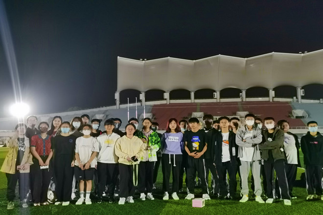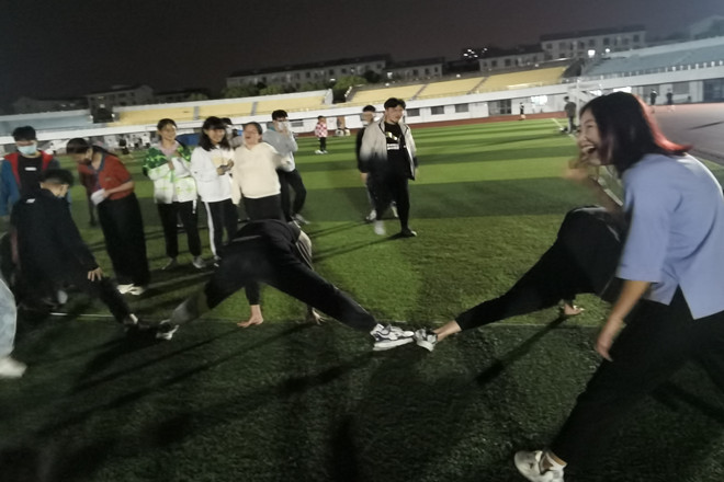 春日的景色。即使是在疫情之下,春日还是那么温暖且多彩。和往常不同,这次班级同学将活动时间放在了晚上,同学们一起在操场上享受晚风习习和江大的操场夜景。