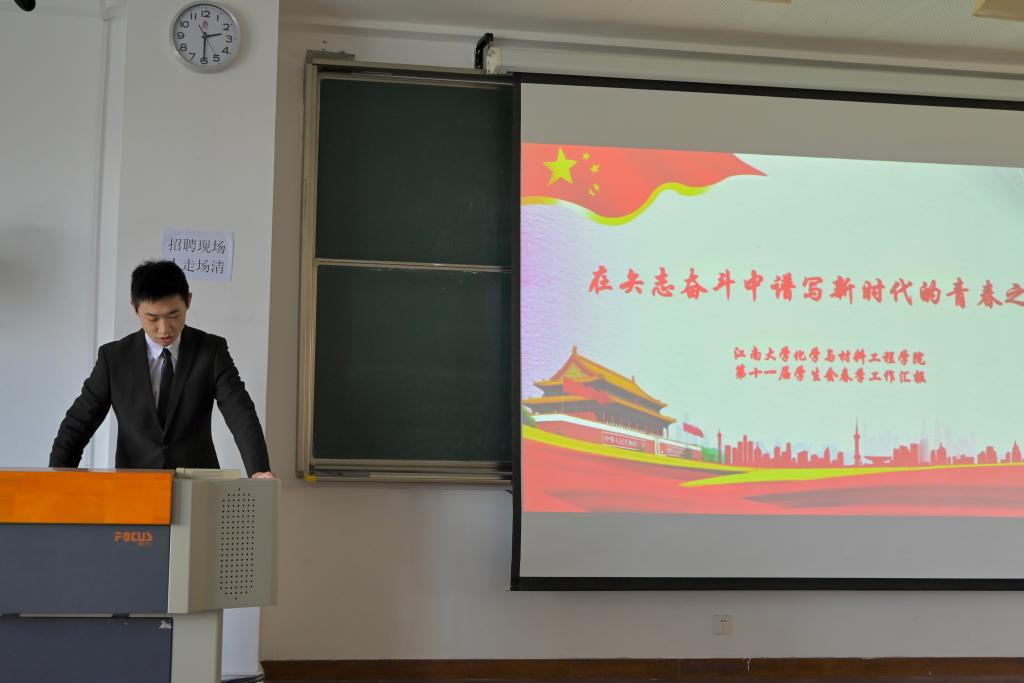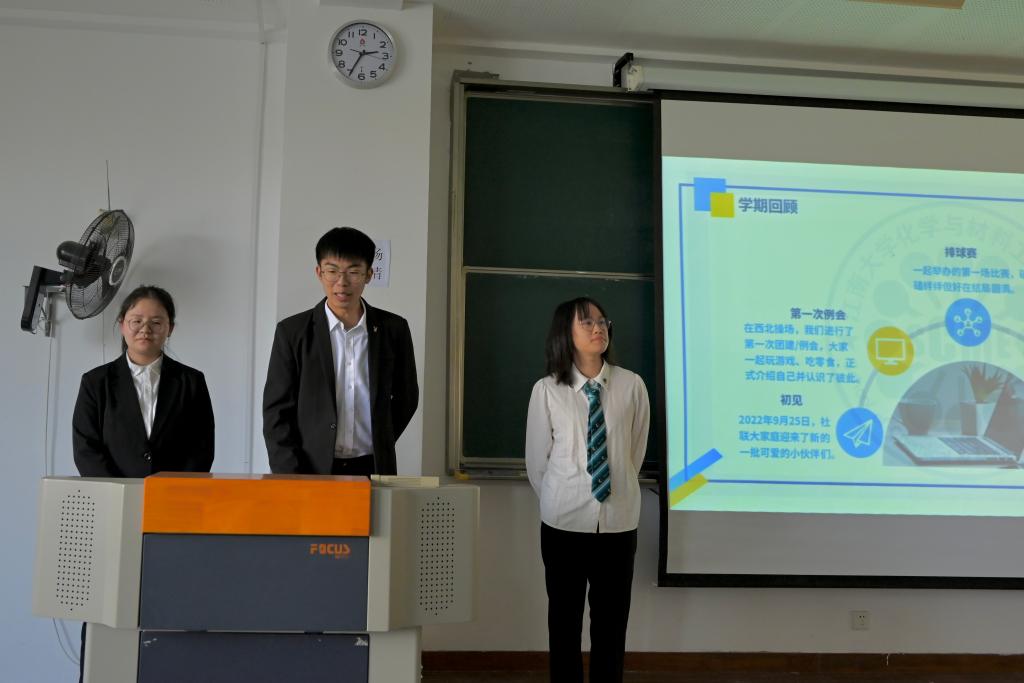校歌。随后,各部门从新晋成员介绍、工作成果、工作不足、对未来的发展规划等方面对上一年度工作进行了总结汇报。同时,学生会主席团的三位主席与各部门负责人进行了交流与沟通,既表达了对去年各部门工作成果的肯定,也对一些工作中出现的问题给予了一些建议。