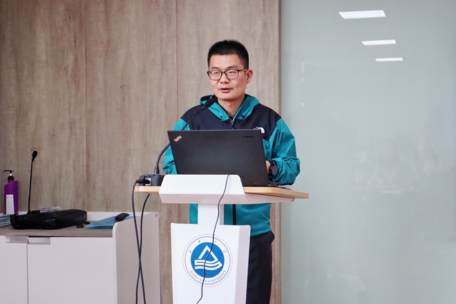 为进一步提升宣讲团成员的知识水平和宣讲能力,化工学院特聘孙晨光老师为“化语传党音”青年宣讲团导师,刘凡现场为其颁发聘任证书。随后,孙晨光以《用新的伟大奋斗创造新的伟业——深入贯彻党的二十大精神报告》进行主题报告。他从党的二十大报告的15个部分出发,结合自身经历与社会热点,融合国内国外史实时事,深入浅出地对党的二十大精神进行了精准解读,并对宣讲团成员的备课要点、宣讲重点、互动亮点进行了着重提醒和指导。