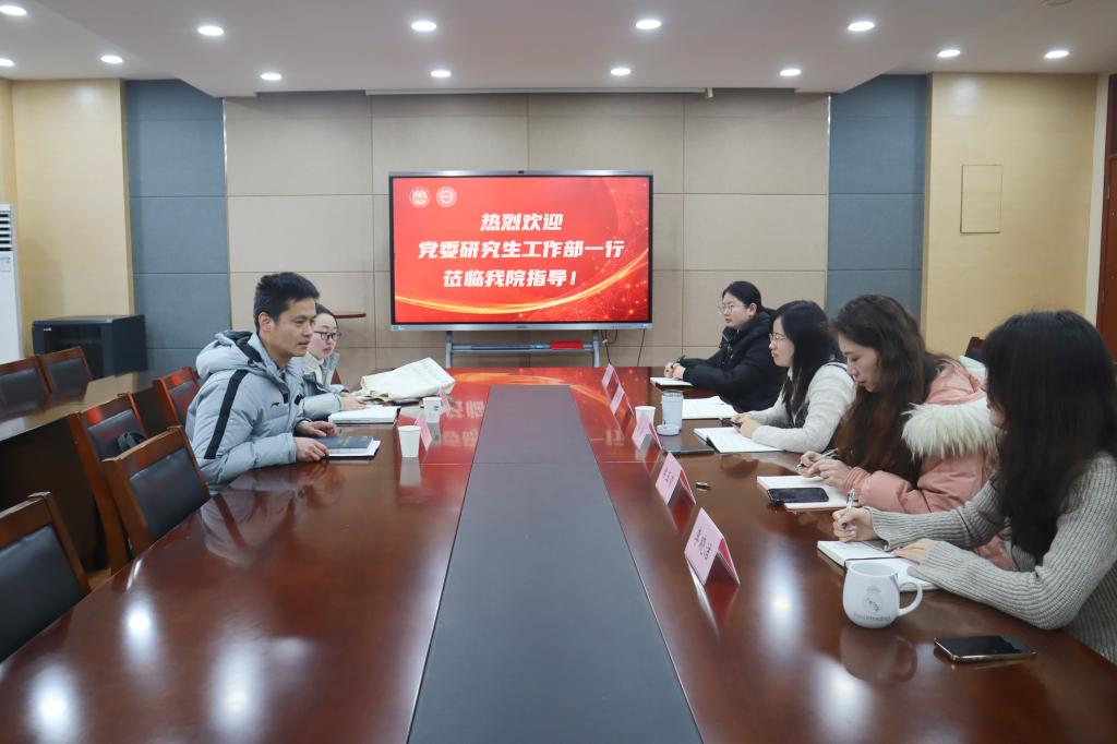 陈周对学院前期研究生思政工作取得的成绩表示肯定,他指出,在教育强国、科技强国、人才强国的大背景下,研究生教育肩负着高层次人才培养的重要使命,完善研究生教育管理工作迫在眉睫。随后,陈周围绕优化“质量优先、追求卓越”的研究生奖助体系,建立研究生网格化管理机制,推动爱国主义主题教育等内容与在场老师进行讨论。董霞介绍了学院在思政、科研、文体活动等方面的研究生管理工作,并就学院目前试行的网格化管理情况进行总结汇报,为网格化管理的全面落地和升级建言献策。