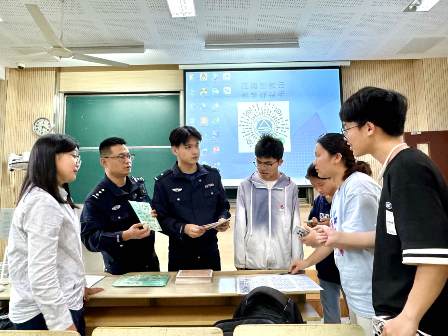 民警为学生发放宣传资料