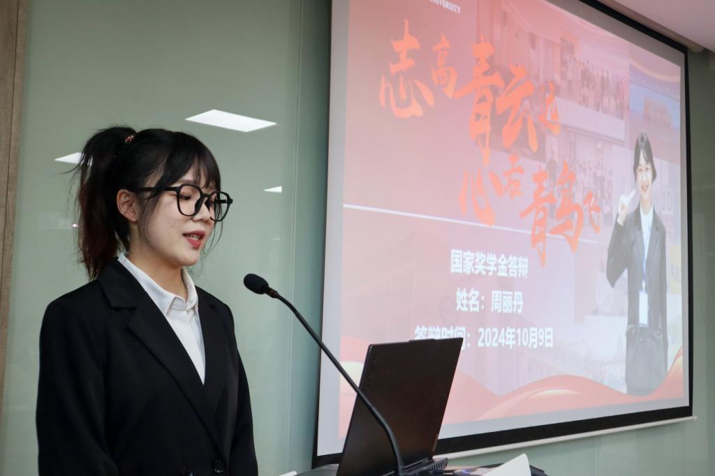 经过前期个人申报和学院初审等环节后,共二十位本科生作为候选人,取得参加本次答辩资格。本次答辩分为个人展示和评委提问两个环节。在个人陈述环节当中,参评学生结合自身成长故事,从学习成绩、科研成果、社会实践、志愿活动等多方面内容进行展示,向各位评委老师展示了自身的学术成果与实践经验。评委老师们也针对每位答辩学生提出了在科研学习、学生工作及生活上的宝贵意见。同时,他们的努力和奉献精神也将激励着本科新生追求卓越。经答辩评审,最终评选出郑文熠等十位优秀的本科生获得国家奖学金予以公示。