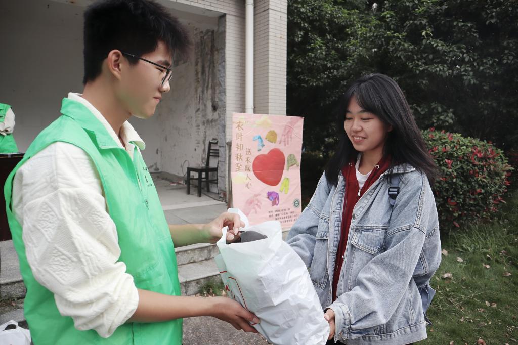 传播秋日温暖,传递化工温情。现场同学们被精心布置的场地和海报所吸引,志愿者们热情地为大家介绍活动内容和意义。同学们积极响应,捐赠者络绎不绝,志愿者们忙碌而有条不紊地接待着前来捐衣的同学。同时,化工青协还为捐衣捐物的同学特别准备了一些小礼物,以表示对他们爱心的感谢,让捐赠者们冒雨而来,暖心而归。