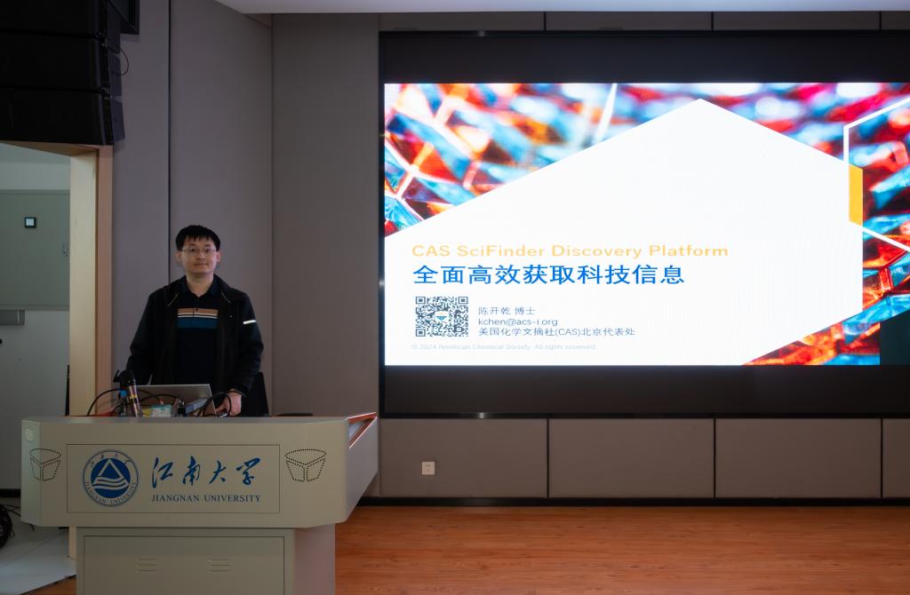 讲座聚焦于两个在化学领域具有极高权威性的数据库——ACS美国化学会数据库和CAS美国化学文摘社数据库。邀请了iGroup China公司ACS数据库资深培训师,华东师范大学教育硕士虞昊安老师和爱荷华州立大学博士、美国化学文摘社方案解决专家陈开乾博士为大家进行讲解。首先,虞昊安老师为同学们带来了关于ACS科研数据库的深度剖析。在讲解过程中,虞老师从多个维度阐述了ACS数据库的文献资源利用方法。他强调,在当今科研竞争日益激烈的环境下,充分挖掘和利用数据库中的文献资源,是科研人员把握前沿研究方向、获取创新灵感的关键所在。对于科研学术发表相关内容,虞老师不仅介绍了ACS数据库期刊的最新动态,还重点针对英语科技论文写作这一关键环节展开了细致入微的讲解。此外,虞老师还深入讲解了如何对ACS学术期刊做合理的投稿选择。他详细介绍了不同期刊的特点和偏好,帮助同学们根据自己的研究内容和水平,选择最适合的投稿渠道。在讲解过程中,虞老师还穿插了许多实际案例,使同学们更加直观地了解了学术期刊论文发表过程中的投审稿流程和同行评议知识。现场气氛热烈,同学们积极提问,虞老师都耐心解答,与同学们展开了一场热烈的学术互动。