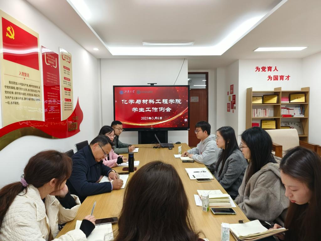 新学期学生工作研讨会在化工楼A314会议室召开,学院党委书记潘庆伟、党委副书记兼副院长董霞以及全体辅导员参加会议。