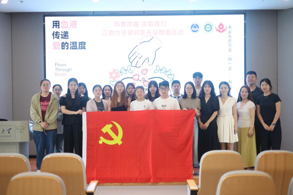 2023级研究生第二党支部组织举办,党支部书记程子涵主持活动,旨在普及献血知识,弘扬奉献精神。并随后在知行楼二楼大厅开展了爱心献血活动。宜兴市红十字会血站党支部书记、站长潘迎霞,副站长王云霞,化工学院辅导员李晓洁出席本次活动。