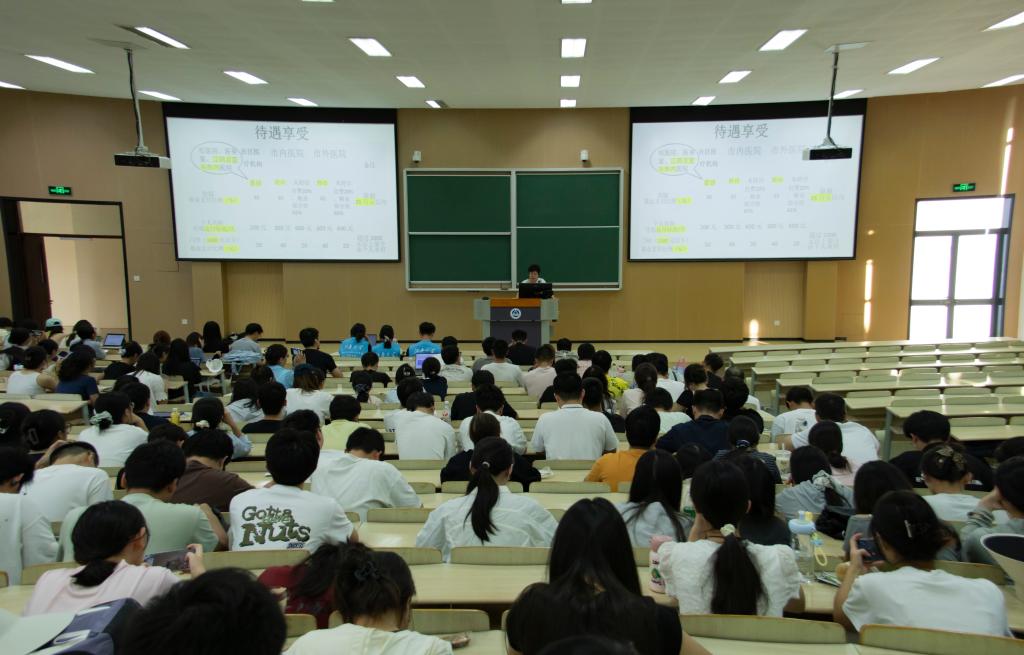 校医院院长叶军围绕《研究生健康教育》展开讲解,系统介绍了大学生就医指南、医保政策、结核病与艾滋病的防控知识。她详细解读了医保报销流程、异地就医备案、转诊手续等实用信息,并重点讲解了结核病的早期症状与艾滋病的传播途径及预防措施。叶院长结合多年传染病防控工作经验,提醒同学们增强自我保护意识,科学防范传染病,筑牢校园健康防线。