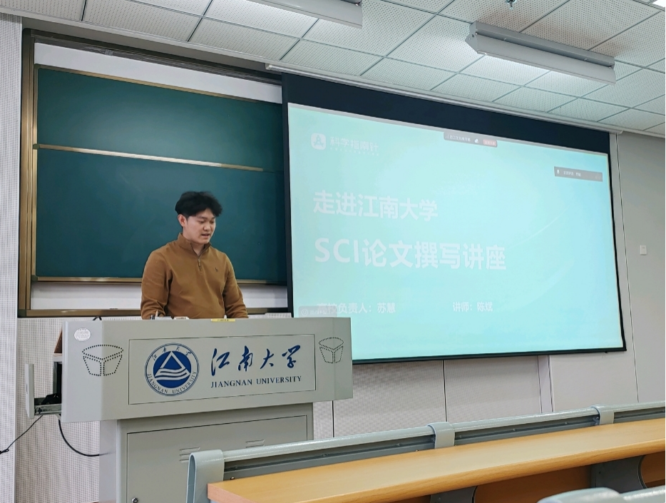 在蠡湖校区化工楼A316及东氿校区知行楼C306报告厅,举办青橙计划-科研技能提升营之SCI论文撰写专题讲座,学院近400名研究生通过线上线下相结合的方式共同参加了此次活动。本次讲座特邀抖音知识分享领域创作者、上海高校硕导陈斌老师担任主讲,科学指南针负责人苏慧老师主持。