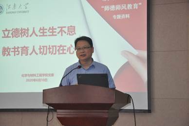 6月10日下午,化工学院在B329会议室召开师德师风教育专题活动,学院党委书记潘庆伟主持,全体教职工参加了会议。
