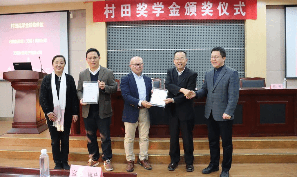 12月24日下午, “村田奖学金”颁奖典礼在化工楼B329举行。出席本次活动的嘉宾有:村田新能源(无锡)有限公司和无锡村田电子有限公司董事长野田慎治,村田新能源(无锡)有限公司副总经理辻篤,无锡村田电子有限公司管理统括部统括部长陈俊等无锡村田公司12位企业代表;机械工程学院党委书记高雪梅,院党委副书记方俊;海角社区