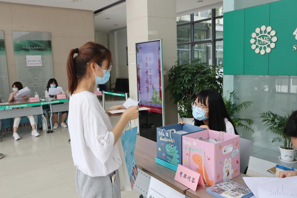 始建于哪一年?”“干粉灭火器适用于哪里?”……学院在迎新现场特别设置了新生“有奖问答”环节,问答题目结合前期对新生开展的各类线上入学教育内容,包含各类校情院情、党史知识、实验室安全教育等等,负责迎新的老生与新生在现场一问一答,在互动答题中共促成长。此外,学院还贴心地为新生准备了印有迎新元素的手提袋,让新生带着学院的“专属手提袋”,满载着关爱迎接新学期。