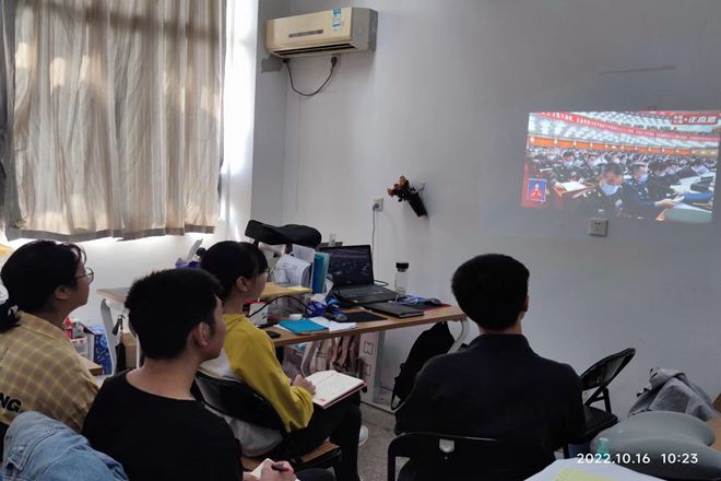 学院领导、教师代表与东氿校区师生党员、入党积极分子集体观看党的二十大开幕会(一)