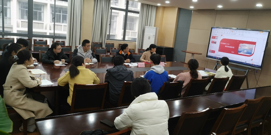 会上,党员同志们首先通过短视频《党的二十大“小课堂”之关键词学习》对二十大的大会主题、“三个务必”、“三件大事”、“两个行”、“六个坚持”以及“中国式现代化”等内容进行了回顾,副书记田卫平随后领学了《中共中央关于认真学习宣传贯彻党的二十大精神的决定》,并围绕学习贯彻党的二十大精神的重大意义以及全面领会二十大报告的精神与大家进行了共学。并结合博士学生发展的实际,要求大家做好切实把思想和行动统一到党的二十大精神上来,统一到党中央的决策部署上来,坚持捍卫“两个确立”,践行“两个维护”;用精神指导实践,切实提升自身建设,助力校院发展;要居安思危,迎难而上,主动作为,在校园的学习和未来的科研道路上,要敢于挑战,攻坚克难,在实现第二个百年奋斗目标中贡献自己的力量。