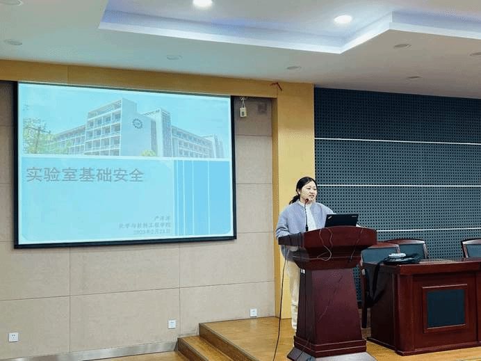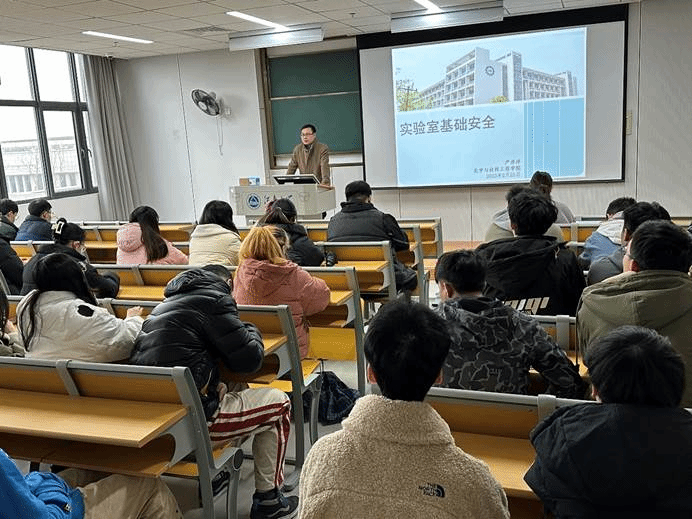 实验室安全管理举措、常见实验室安全隐患等方面,并结合具体事例进行了深入讲解,并提醒大家学院为同学们配备的安全基础设施以及各类设备的用途与使用方法,希望同学们在遇见紧急情况时不惊慌,保持沉着冷静,正确处理问题。