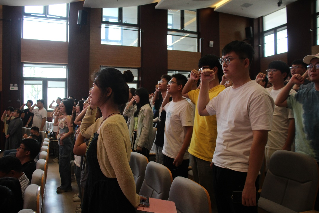 典礼尾声,全体新生在研学会主席方承格的带领下进行宣誓,一声声慷锵有力的誓言,振聋发聩,无一不彰显着新一代江大化工人对学术的尊重和对创新的向往。本次开学典礼,标志着化工学院研究生新生们的科研生活正式开始。辅导员李晓洁希望新生们在接下来的学校时光中习得思考、澄明内心、充盈精神,用更加强大的内心、更加成熟的姿态,直面一个又一个新的挑战。
