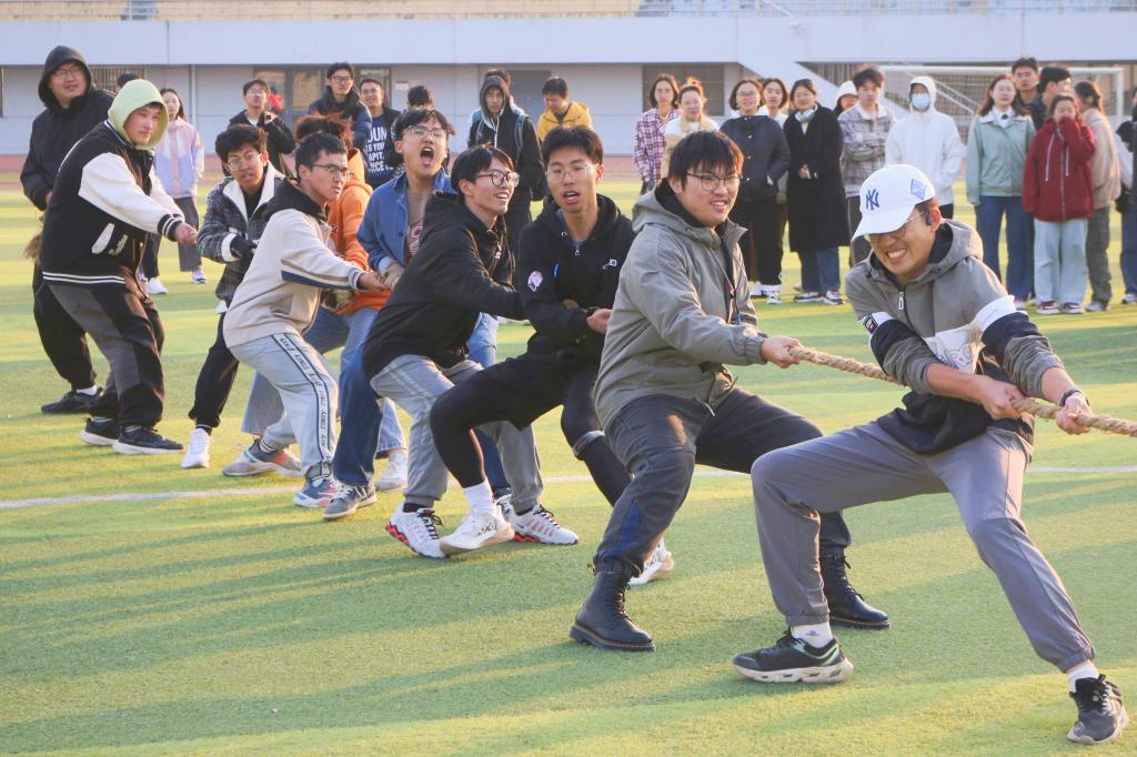 此次运动会包含径赛项目、田赛项目和大众项目。跑道之上,化工学子活力四射,向着终点奋力奔跑;接力棒的精准传递,是一场速度与默契的比拼;准备、起跑、跃起,似羽蝶翩跹,优雅地横杆而过轻盈落地;助跑,远跳,一瞬悬停在空中定格优美弧线;大众项目亦是精彩纷呈,八字跳绳、双人背部顶球、三人四足跑、团队拔河,无一不体现了化工健儿的团结与拼搏精神。
