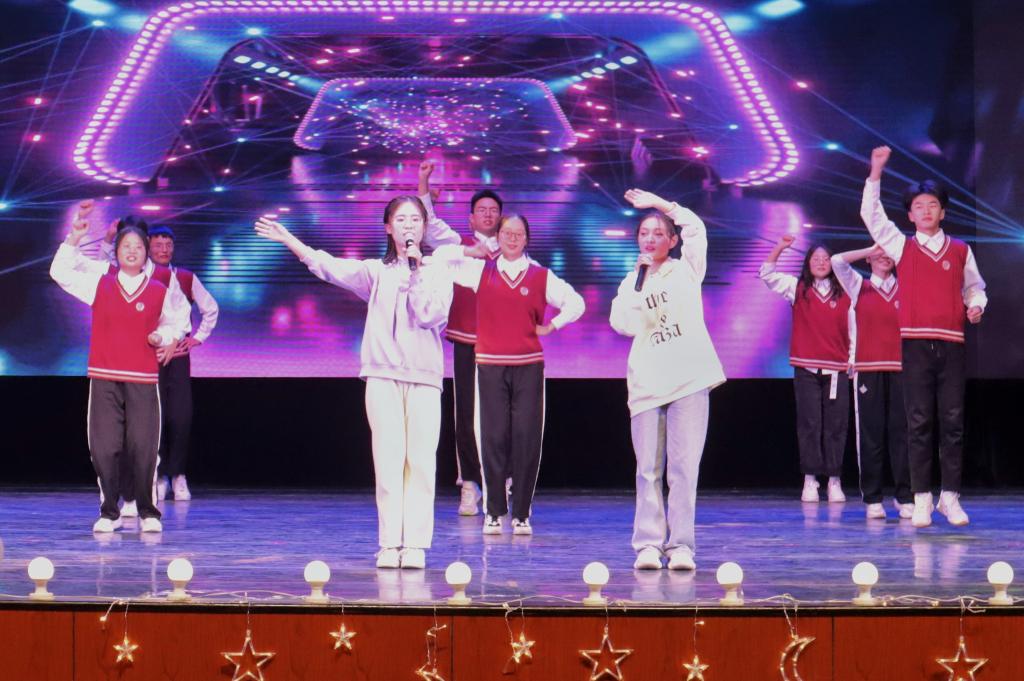 第四篇章是星辰大海·共少年。磁力乐队带来歌曲《青春修炼手册》、院舞蹈部的《super shy+cream soda》以及歌舞串烧《雅俗共赏》都备受同学们的喜爱。应化2302班带来的《这世界有那么多人》温暖深情、抚慰人心。最后,晚会在学生会带来的《逃离地球表面》的歌声中圆满落幕。