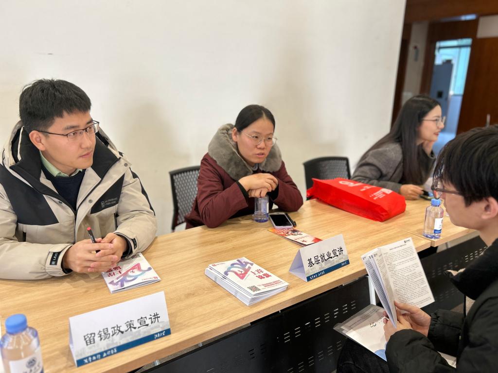 招聘会现场气氛热烈,毕业生积极投递简历,在展位前与企业负责人就工作内容、技能要求、发展前景等问题进行深入交流。此外,招聘会现场还设立了包含职业生涯指导、入伍咨询、简历优化、留锡政策宣讲、基层就业宣讲五大功能板块的一站式就业服务区,为毕业生提供精准咨询服务,助力学生清晰认识自身优势、明晰职业规划方向、做好职业选择。