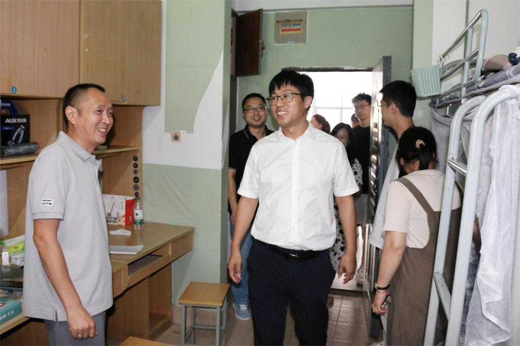 会后,学院院长刘仁、党委副书记、副院长董霞、学工办主任鞠峰以及班主任代表走访新生宿舍。刘仁亲切地询问了新生们对学校的初见印象,并就生活适应、学业规划等问题与新生深入交流,关怀至微。在一声声的关切问候中,新生们充分感受到了来自化工学院的温暖,与领导老师畅所欲言。面对家长们提出的宿舍问题,领导老师耐心解答,并鼓励学生在享受自由时保持自律,面对问题时学会解决问题,面对诱惑时保持警惕,做到安全生活、安心学习。
