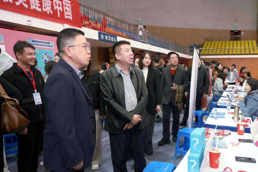 开幕式后,相关领导一同前往各招聘展位,与用人单位充分沟通,与求职学生亲切交流,鼓励同学们树立正确的就业择业观念,努力实现与用人单位之间的“双向奔赴”。