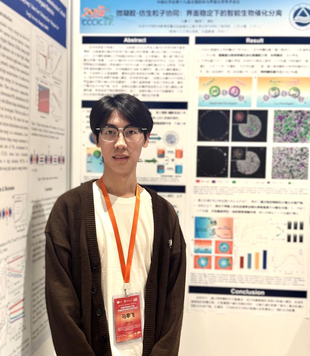 2023级研究生马攀飞(指导教师:蒋航、魏涛)的海报得到与会专家的高度关注,并凭借精良的墙报设计与创新的研究内容,从众多展报中脱颖而出,最终荣获英国皇家化学会颁发的“RSC优秀墙报奖”!