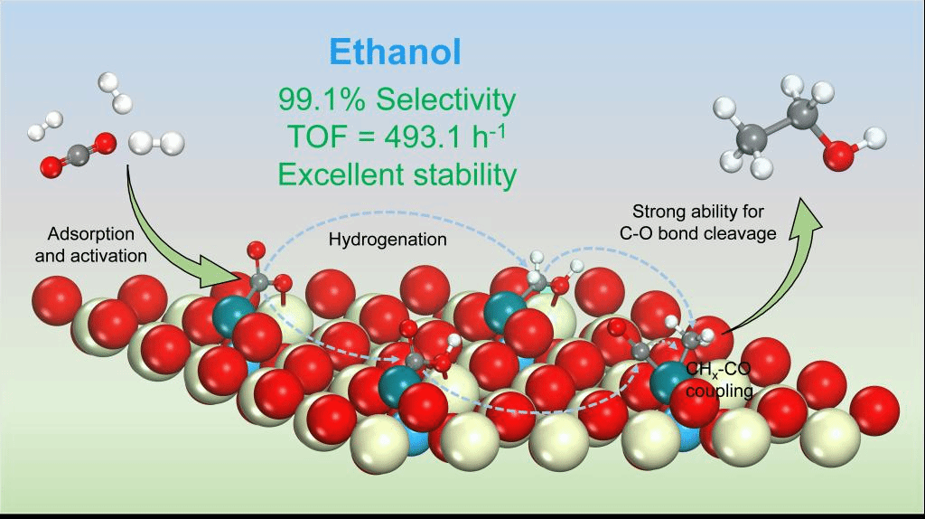 图1. Rh1/CeTiOx催化剂催化CO2加氢一步制乙醇