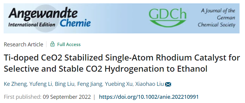 这一成果近期以题为“Ti-doped CeO2Stabilized Single-Atom Rhodium Catalyst for Selective and Stable CO2Hydrogenation to Ethanol”发表在Angewandte Chemie International Edition期刊上。海角社区