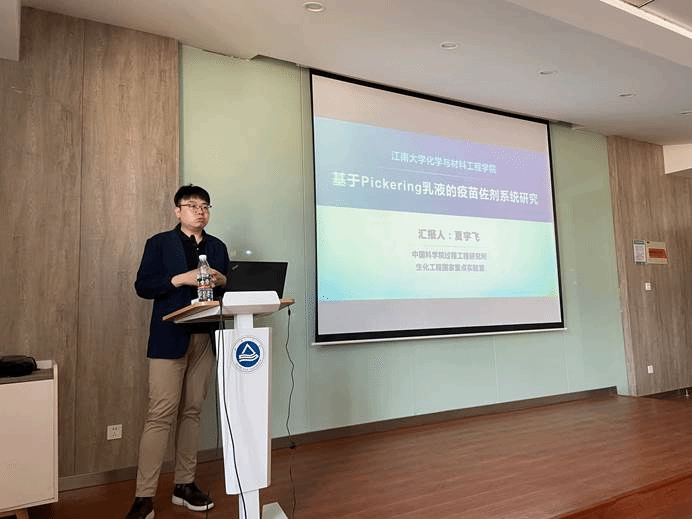 夏宇飞研究员作了“基于Pickering乳液的新型疫苗佐剂系统研究”的报告,并介绍了中科院过程工程研究所的重点研究方向。夏宇飞研究员首先简单介绍了微球科学技术促进生化工程的发展历程,以及生物分子组装与生物医学工程领域的一些主要研究方向。紧接着重点介绍了基于Pickering乳液的靶向递送系统研究,即构建了由颗粒稳定的可变形乳液,其显著提升了淋巴结递送效率和免疫应答效果,为疫苗富集淋巴结提供了新策略。最后还介绍了利用独创的颗粒化乳液技术,已在新型冠状病毒肺炎(COVID-19)重组疫苗对小鼠实验中取得了显著优于商品化铝佐剂的免疫应答效果,颗粒化铝佐剂的研究强化了新冠疫苗的体液免疫和细胞免疫应答,提升了疫苗的室温储存稳定性及生物安全性,为安全、高效的新冠疫苗佐剂构建提供了新策略。
