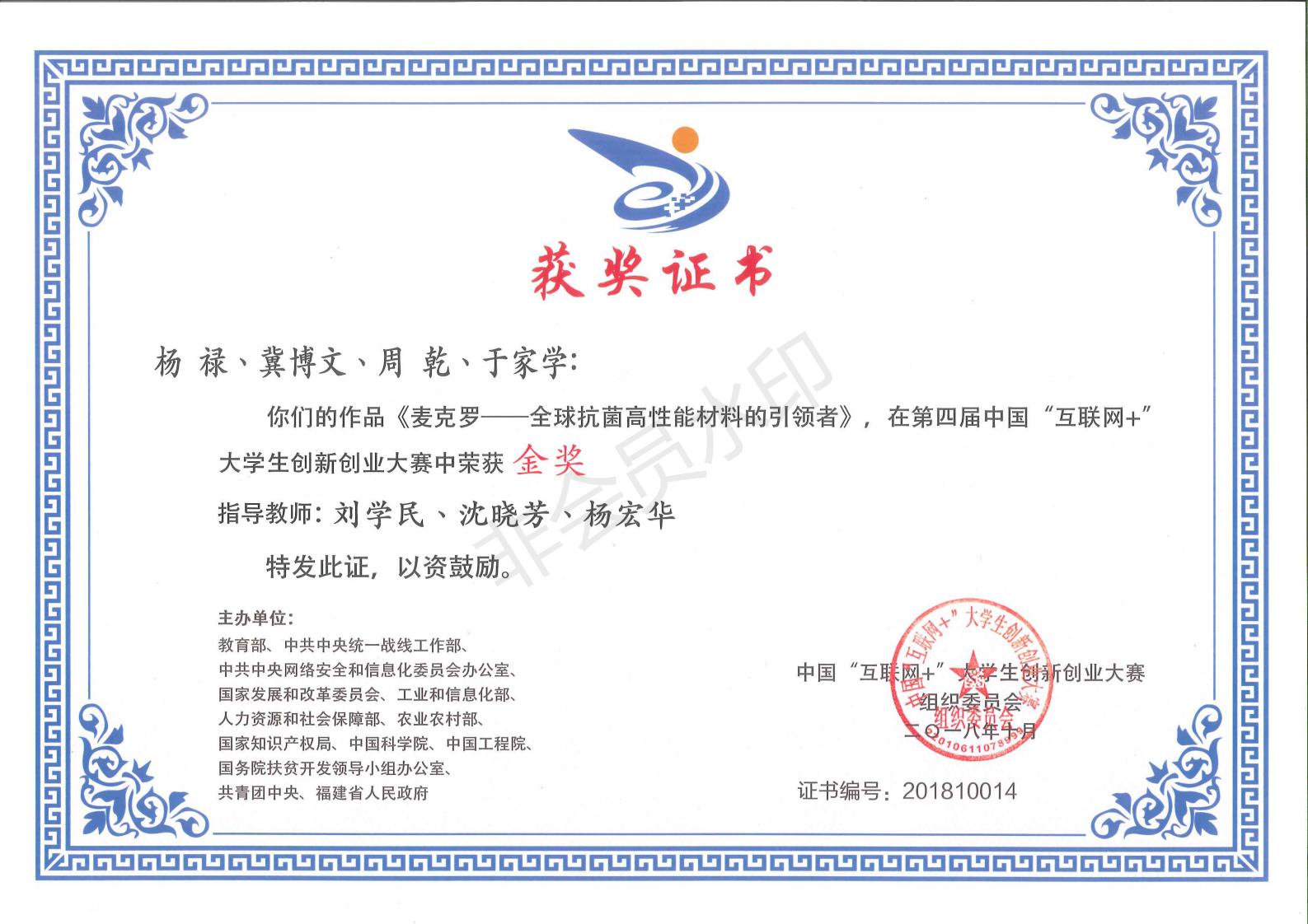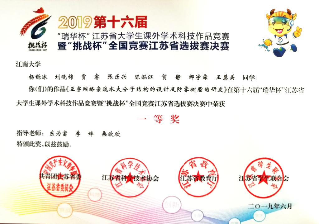 第七届中国大学生高分子材料创新创业大赛(PMC)一等奖