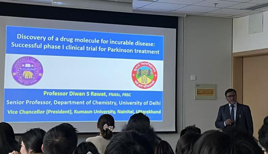 Diwan S Rawat教授的报告主题为“Discovery of a drug molecule for incurable disease: Successful phase I clinical trial for Parkinson treatment”,重点介绍了药物分子的提取与合成,研发出一系列新型治疗帕金森药物,并在小鼠实验上取得初步成功。Diwan S Rawat教授的研究为拓宽材料的应用范围,深入学科领域交叉提供了新思路。Miklós Zrínyi教授和Diwan S Rawat教授的报告内容详实,生动丰富,令人耳目一新,引起了在座师生的积极交流和讨论,师生们纷纷表示受益匪浅。