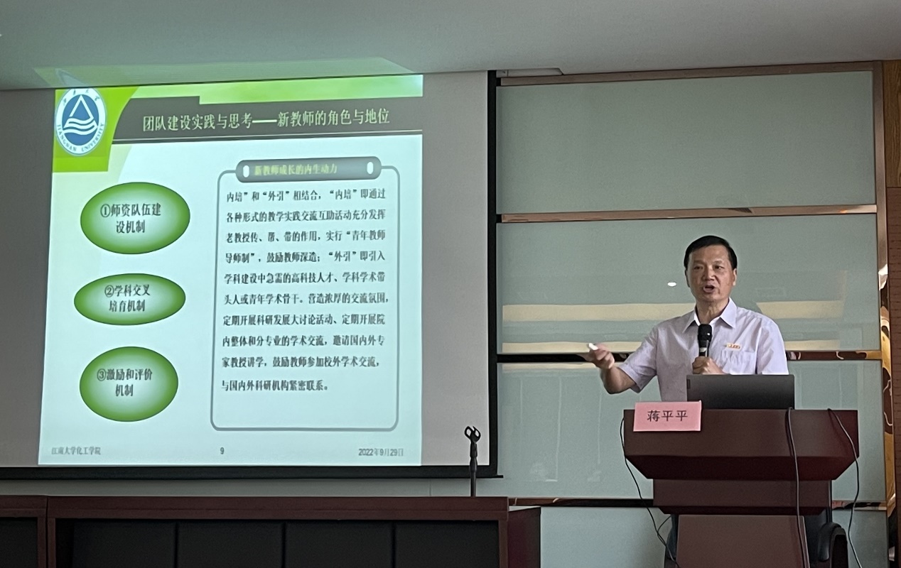 本次交流活动围绕青年教师教书育人、教学与科研和在团队中成长等方面展开,三位特邀专家为大家带来了精彩的报告。同济大学杜建忠教授的报告题目为:“青年教师如何做更好的科研”。他将科学研究分为三种类型:“前无古人,后有来者”、“前有古人,后无来者”、“前有古人,后有来者”。他结合自身开拓“以糖控糖”新领域的经历,强调了青年教师选择研究领域的重要性。他希望,各位青年教师要具备战略性思维,充分发挥自身潜能,结合团队和学科发展需要,做“有组织”的科研。化工学院蒋平平教授以“敬业与奋进,责任与奉献”为主题,阐述了科研团队的内涵与本质、新教师的角色与地位。他提出,青年教师要勇于追求“学院首次”,在知识多元化、学科交叉化趋势加强的背景下,珍惜学院氛围,加快融入团队,实现合作共赢,在成全学生的同时成就自己。海角社区